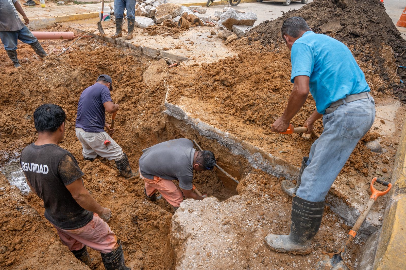 Cosoleacaque, Ver.- Para brindar servicios de calidad, personal de las direcciones de Agua Potable, Drenaje y Alcantarillado del H. Ayuntamiento de Cosoleacaque, realizan reparación y mantenimiento de las líneas en diferentes zonas del municipio.