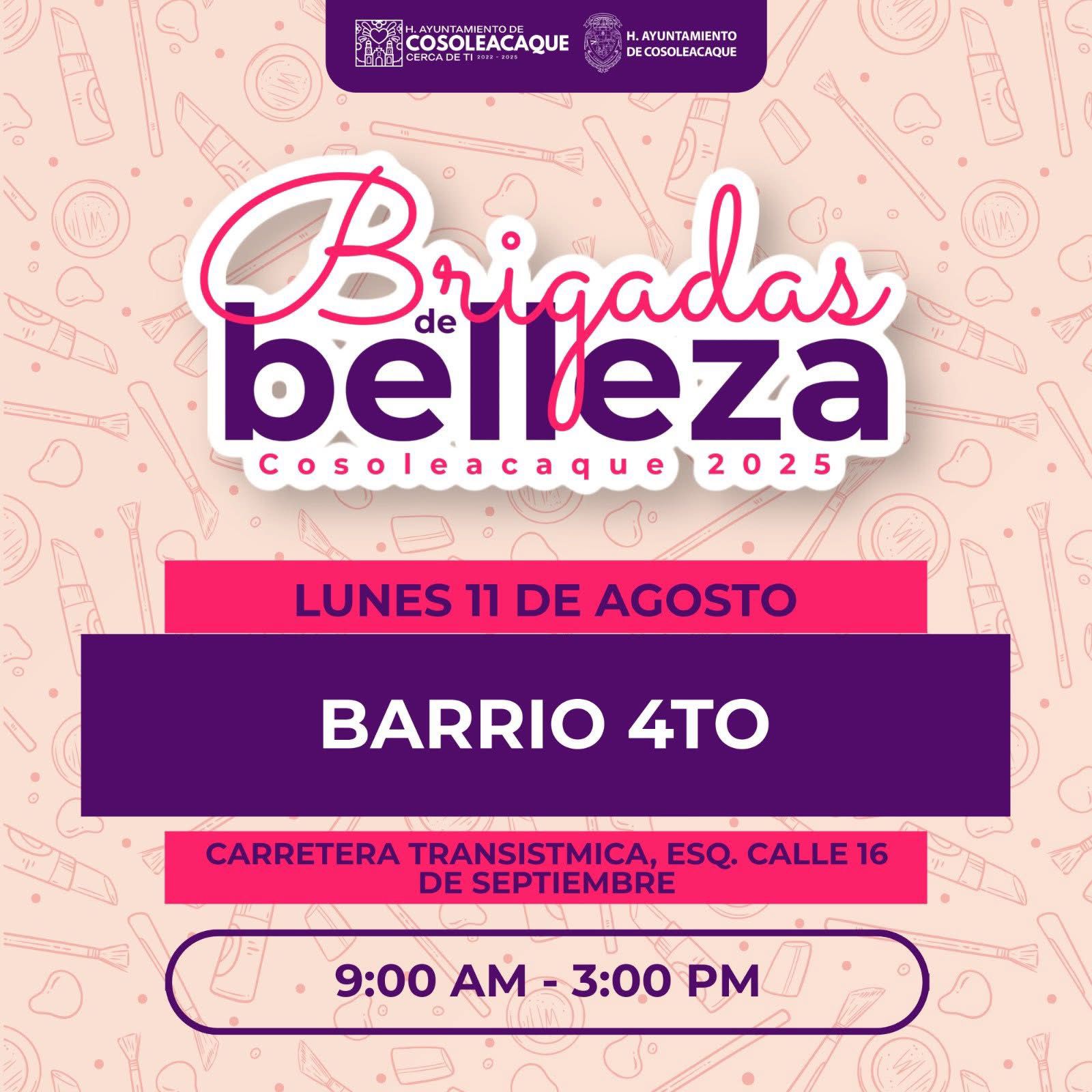 Brigadas de la Belleza llegarán al Barrio Cuarto, en Cosoleacaque, este lunes 11 distritorojo agosto 10, 2025 Continue Reading Previous: Otro decapitado en el sur de Veracruz; en carretera Las Choapas-ParaleloNext: Vecinos de la Congreso Constituyente podrán pagar agua en el módulo de servicio, el lunes 11
