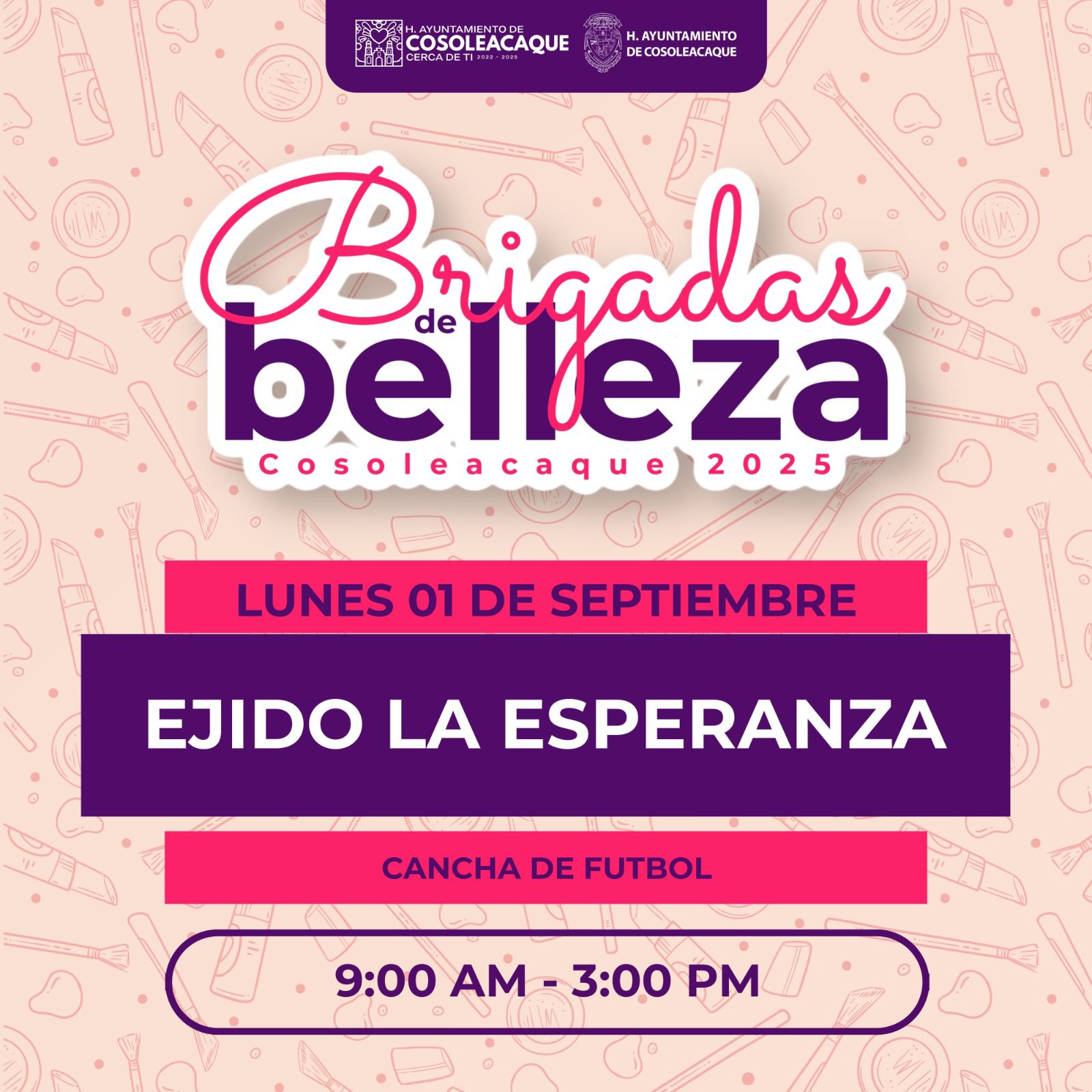 Brigadas de la Belleza visitarán el ejido La Esperanza, en Cosoleacaque, este 1 de septiembre distritorojo septiembre 1, 2025 Post navigation Previous: Emilio Olvera interpone recurso de reconsideración ante el TEPJF para evitar fraude en electoral en Poza RicaNext: Se podrá pagar agua en el módulo de servicio que se instalará en Villas Ana María, Cosoleacaque, este 1 de septiembre