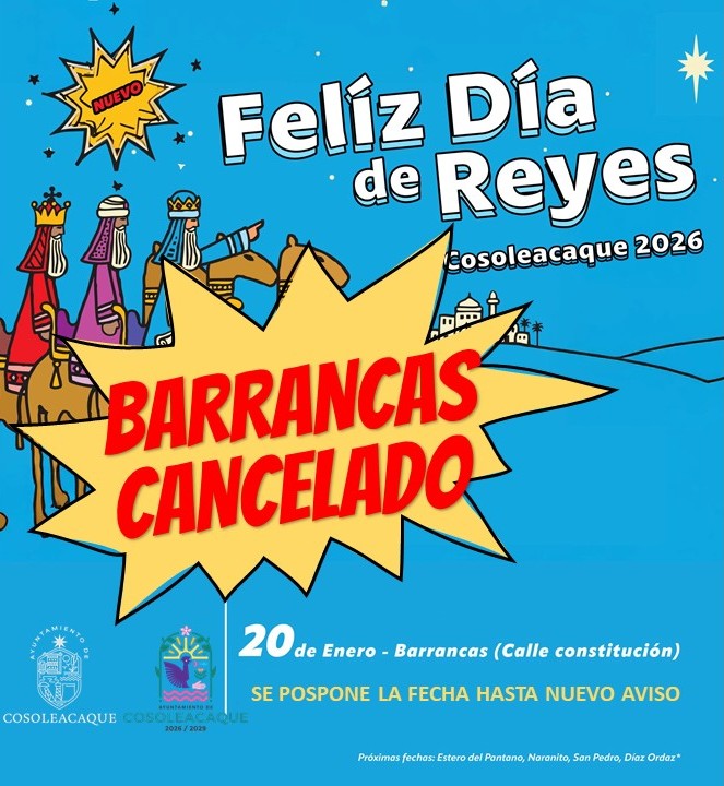 Se informa que el evento de Reyes Magos en la localidad de Barrancas queda cancelado derivado de las inclemencias del tiempo