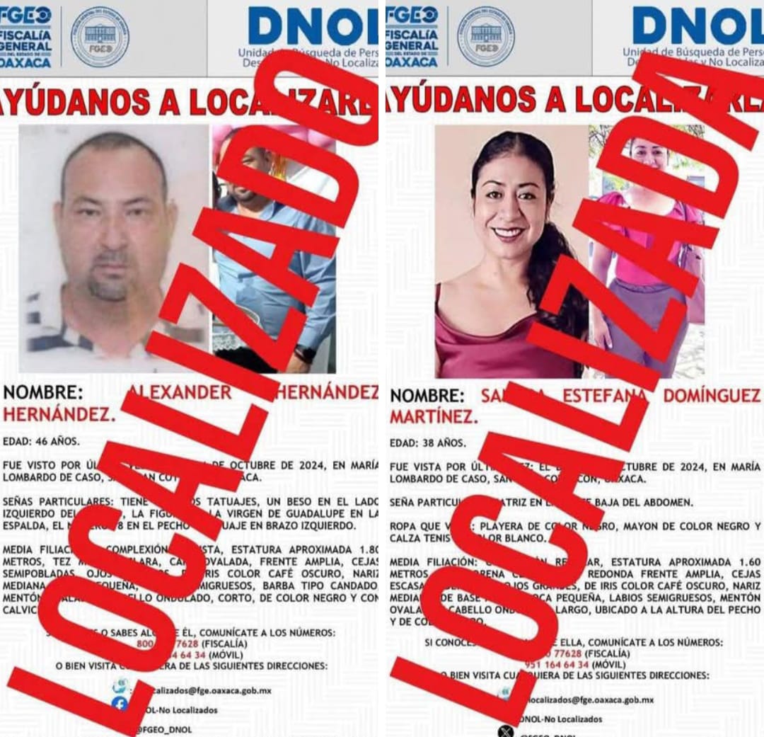 La Fiscalía General de Oaxaca confirma la localización sin vida de la activista Sandra Estefana Domínguez Martínez y su esposo Alexander Hernández Hernández. Ambos fueron reportados como desaparecidos el 8 de octubre de 2024, y sus cuerpos fueron hallados en dos fosas clandestinas en Santiago Sochiapan el pasado 24 de abril. Esta tragedia pone de relieve la alarmante situación de violencia y la omisión de las autoridades ante la búsqueda de activistas en la región.