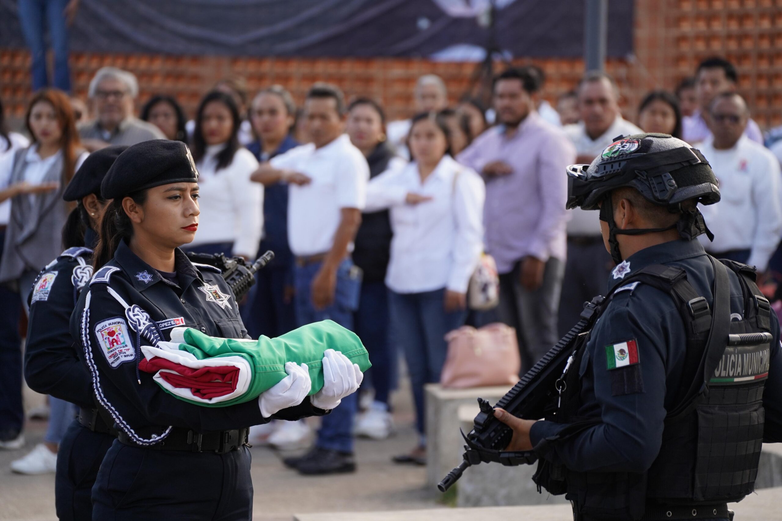 Con respeto y solemnidad, se efectuó el izamiento de bandera y se entonó el himno nacional por parte de la banda de guerra de la Policía Municipal, durante el acto cívico también se hizo una remembranza donde se reconoció la lucha incansable por la República y su firme creencia en el respeto a las leyes.