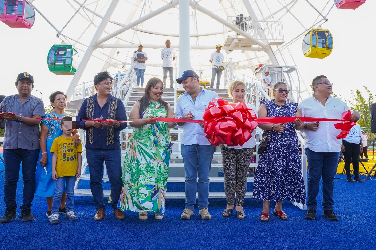 Cosoleacaque, Ver.–. El presidente municipal, Ponciano Vázquez Parissi acompañado de los integrantes del Cabildo del H. Ayuntamiento y habitantes de Cosoleacaque realizaron la inauguración de la nueva Rueda de la Fortuna, una impresionante atracción de 30 metros de altura con 18 cabinas que se convierte en un nuevo ícono para el municipio.