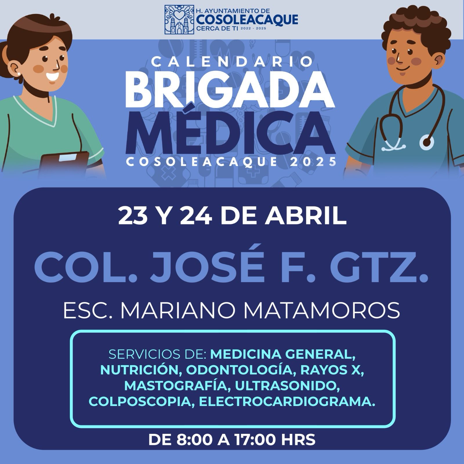 Dará servicio la Brigada Médica en el módulo que se instalará en la colonia José F. Gutiérrez, el 23 y 24 de abril distritorojo abril 22, 2025 Continue Reading Previous: Podrá pagarse agua en el módulo que se instalará en Canticas, este miércoles 23 de abrilNext: Huerta acusa intento de expulsión de Morena por criticar nepotismo y corrupción
