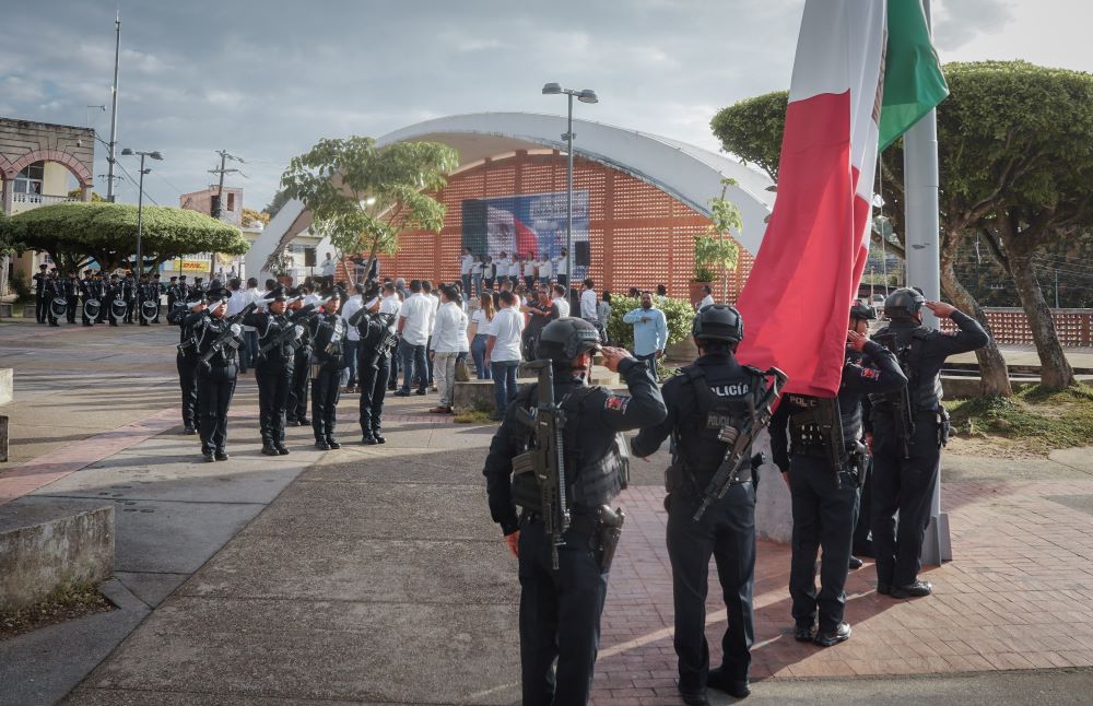 Acompañado por ediles del H, Ayuntamiento de Cosoleacaque se rindieron los honores correspondientes al lábaro patrio. Al concluir el acto Cívico, el cuerpo edilicio, policías municipales y personal de las diferentes áreas del palacio municipal llevaron a cabo guardias de honor.
