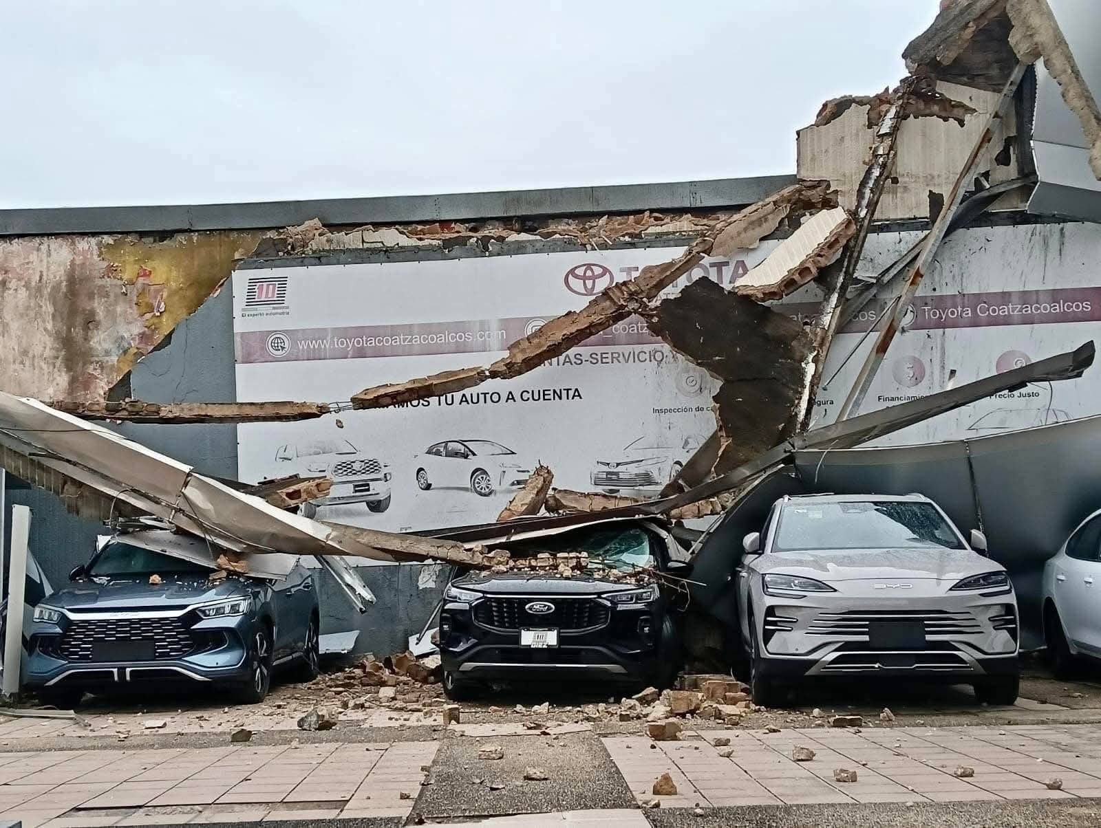 Sobre la carretera Transístmica, a la altura del distribuidor de la “Y”, una barda de la agencia automotriz BYD se vino abajo y aplastó varias unidades en exhibición. En la colonia Puerto México, un espectacular terminó incrustado en una vivienda de la calle Ambrosio Solórzano. Árboles caídos en calles como Román Marín y Nicolás Bravo interrumpieron la vialidad y uno de ellos aplastó parcialmente un automóvil.