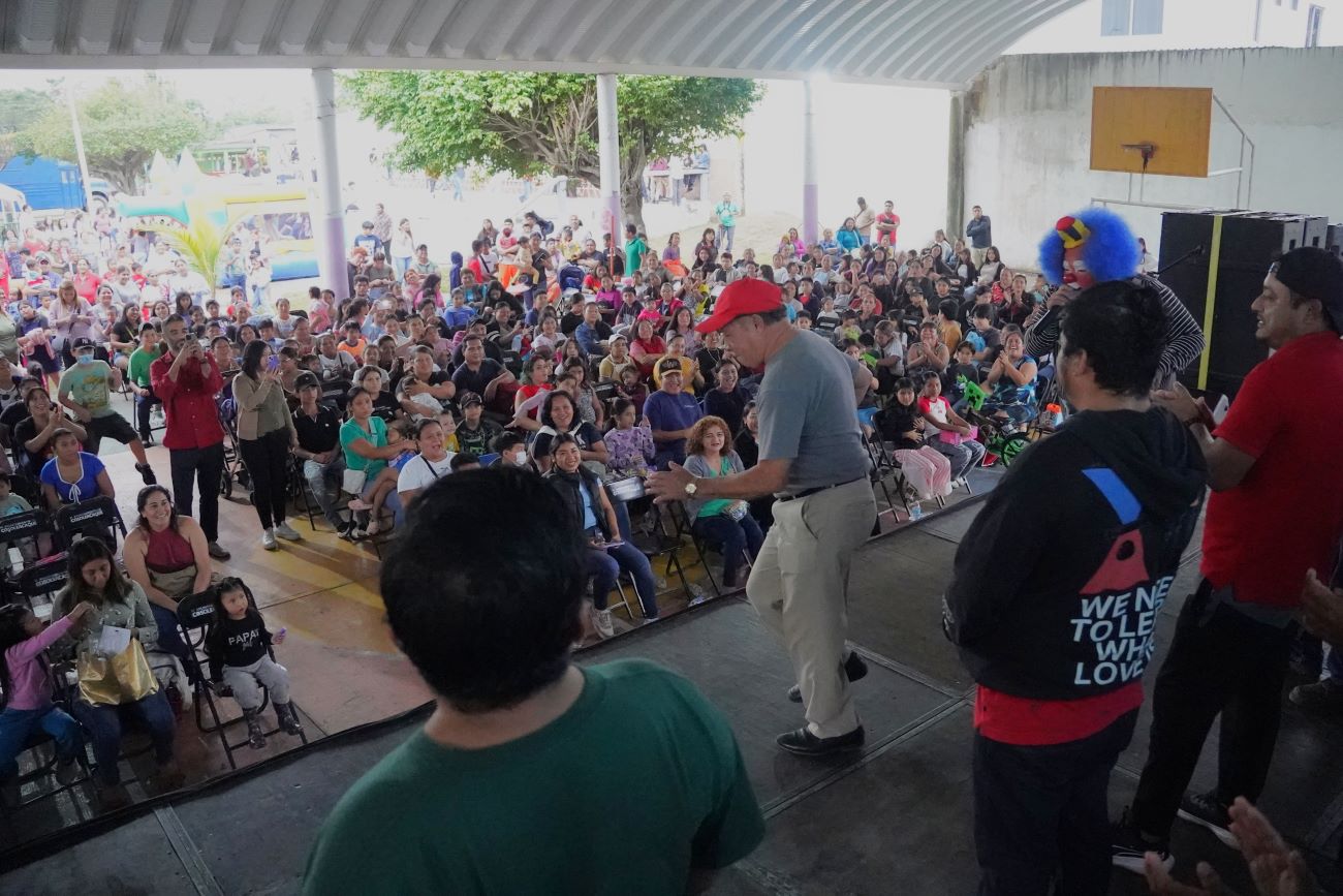 En cada festejo, los niños, papás y mamás participan en los divertidos concursos realizados por los payasos Toribio y Pepín, en el escenario, recibiendo de manos de los ediles del H, Ayuntamiento bicicletas, patinetas, muñecas, entre otros.
