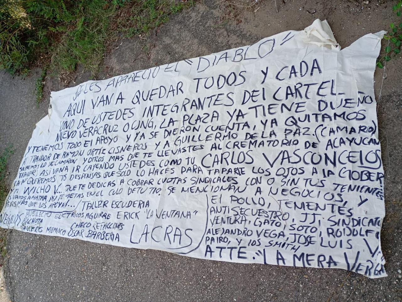 Coatzacoalcos, Ver.- Una manta con mensajes de amenaza de un grupo delictivo fue descubierta cerca del estacionamiento de la Expo Feria de Coatzacoalcos, generando alarma entre los asistentes a un evento educativo y gastronómico; las autoridades la retiraron mientras se refuerza la seguridad en la ciudad.