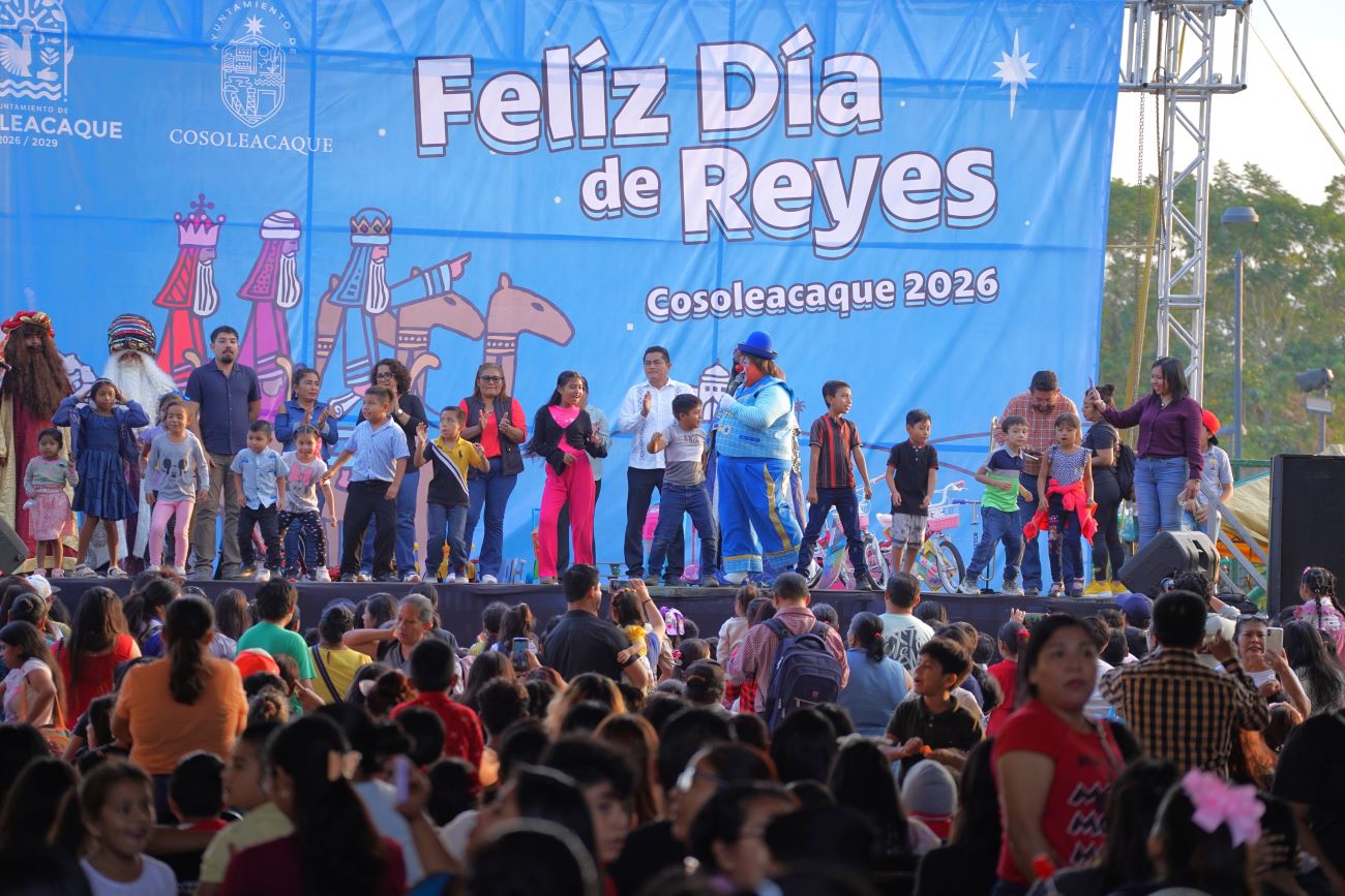 Cosoleacaque, Ver.- Miles de niños de la cabecera municipal de Cosoleacaque disfrutaron de la celebración de Día de Reyes, organizada por el gobierno municipal que encabeza el Lic. Cirilo Vázquez Parissi.