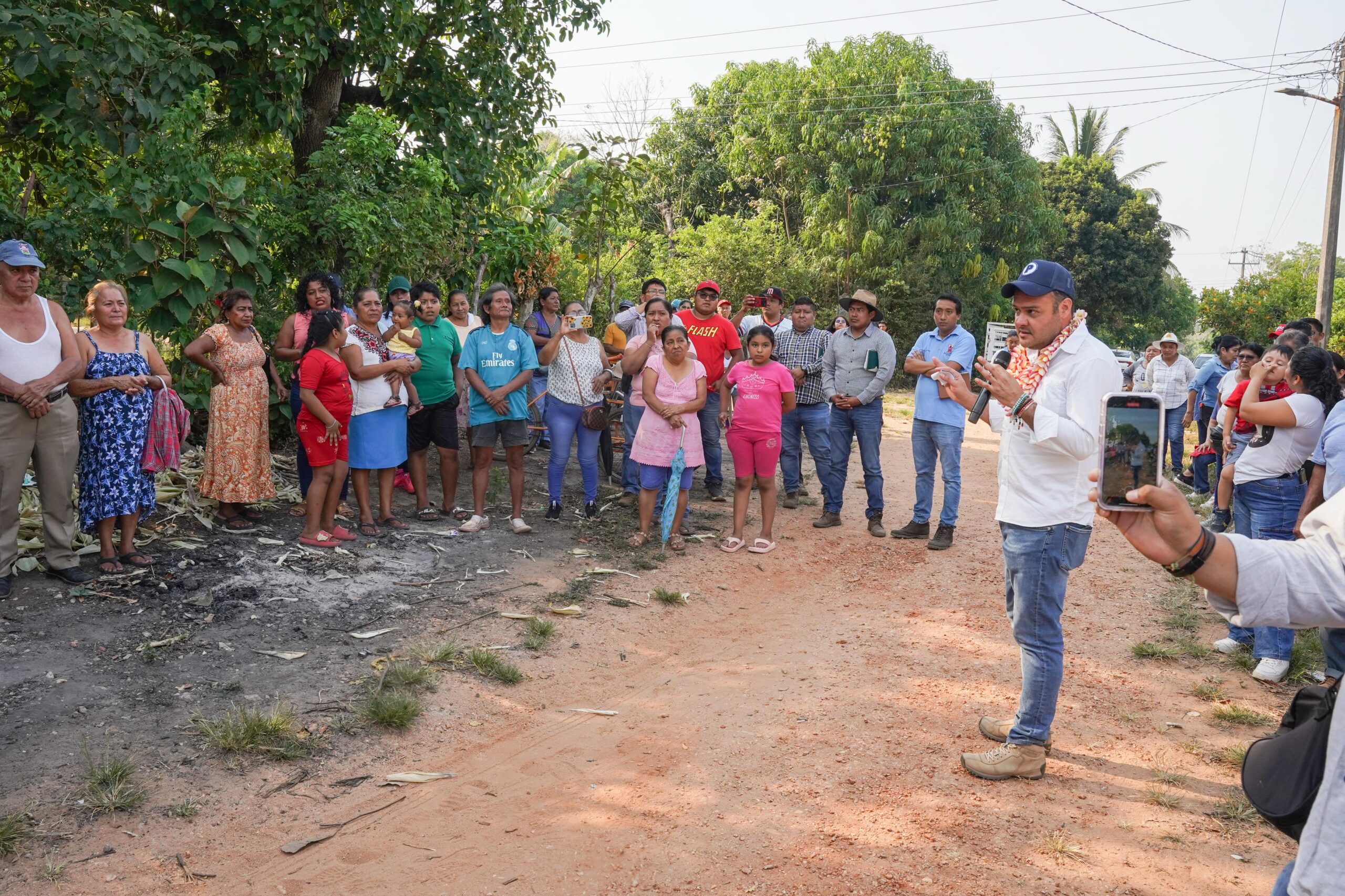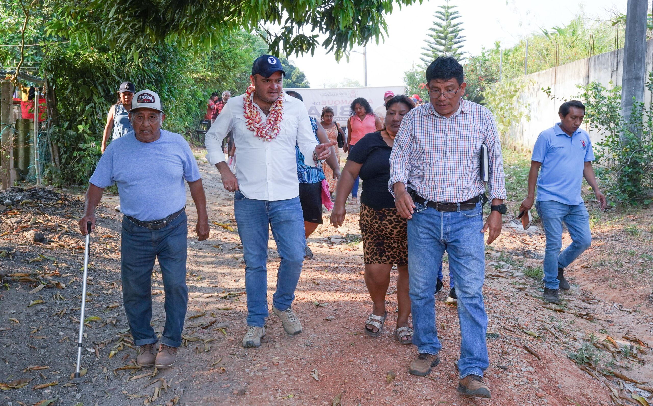 El alcalde arropado por los habitantes de la zona, la síndica única, Blanca Margarita Juárez Martínez, las regidoras, María de los Ángeles Pérez Dávila, Miriam del Rosario Márquez Escobar y Diana Cristina Santos Hernández, realizaron juntos el arranque oficial de la construcción de guarniciones banqueta y pavimento asfáltico de la mencionada vía de comunicación.