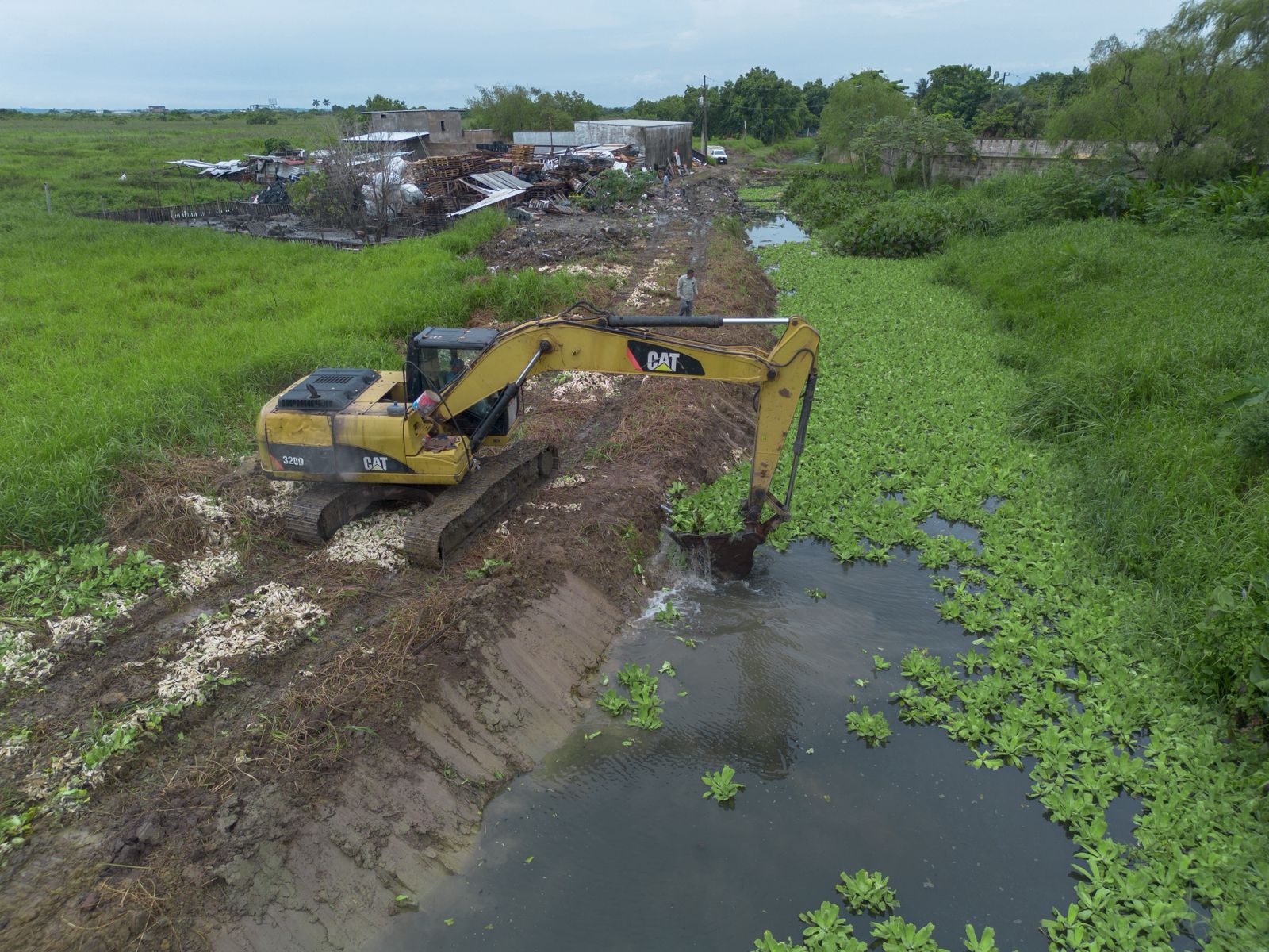En esta semana, se realiza el desazolve con maquinaria del canal a cielo abierto entre las calles 16 de septiembre y Miguel Hidalgo de la localidad de Estero del Pantano, a través del cual se retiran sedimentos, basura, lirio acuático y todo lo que obstaculiza el cauce, y pudiera provocar taponamientos con las lluvias.